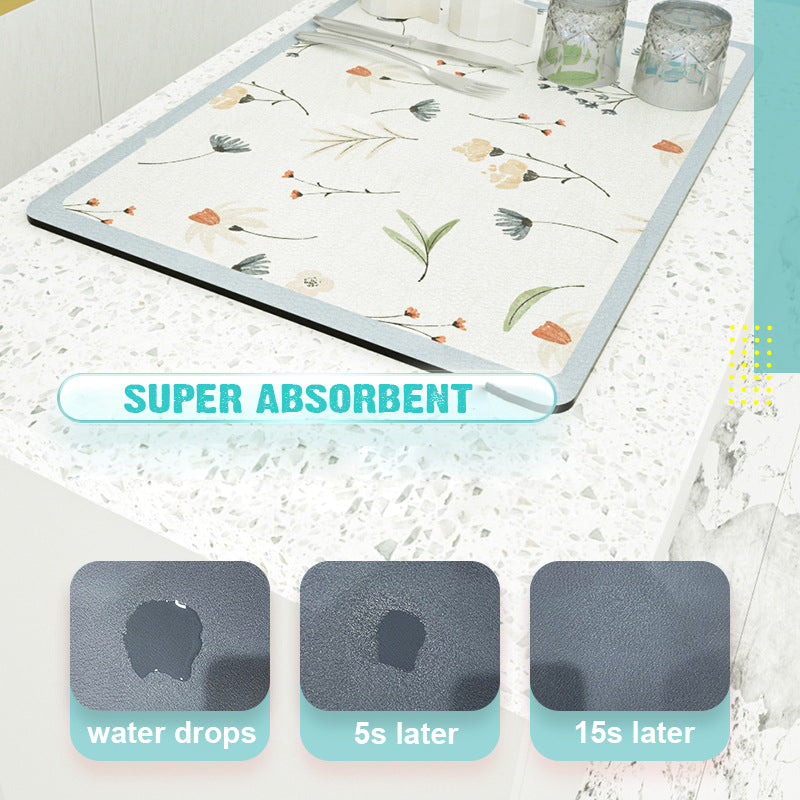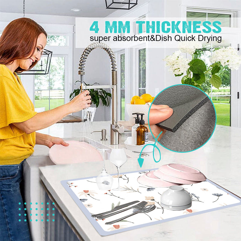 ספוג מים במהירות תוך 3 שניות, ללא נזילת מים. מניחים כלים רטובים על המחצלת והמים נספגים באופן מיידי במהירות, וחוסך זמן בעת ניקוי המטבח.